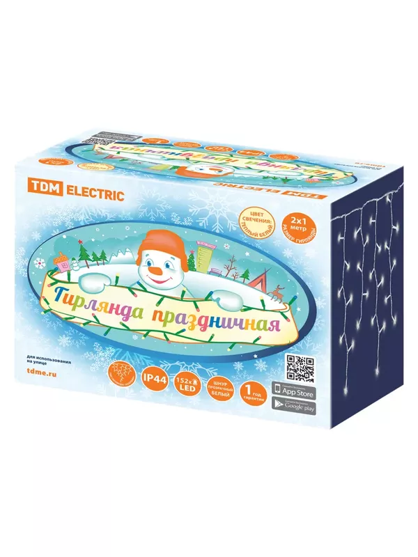 Гирлянда светодиодная «Бахрома» 2х1 м, 152LED, 3000К, мерц-е, посл. подкл, IP44, 250 В, TDM