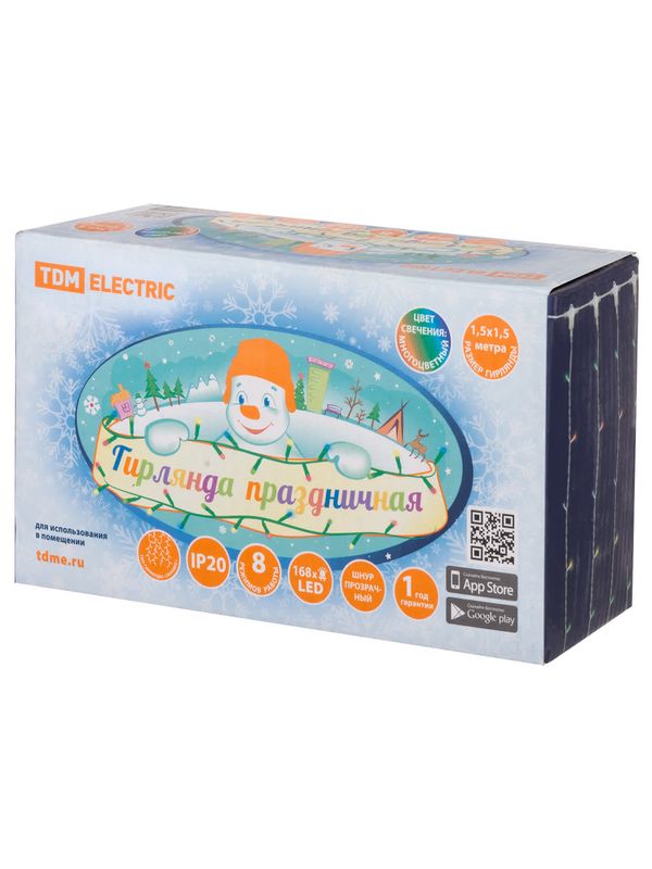 / Гирлянда светодиодная «Занавес» 1,5х1,5 м, 168LED, многоцветн., 8 режимов, 250 В, IP20, TDM