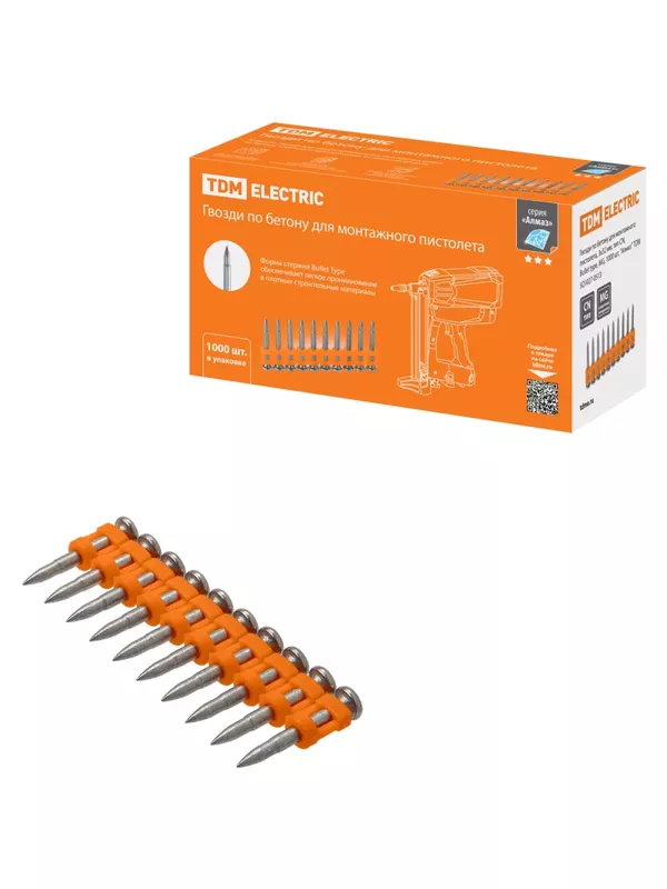 / Гвозди по бетону для монтажного пистолета, 3х32 мм, тип CN, Bullet type, MG, 1000 шт, «Алмаз» TDM