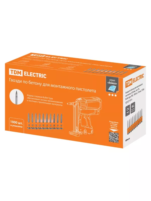 / Гвозди по бетону для монтажного пистолета, 3х38 мм, тип CN, Bullet type, MG, 1000 шт, «Алмаз» TDM