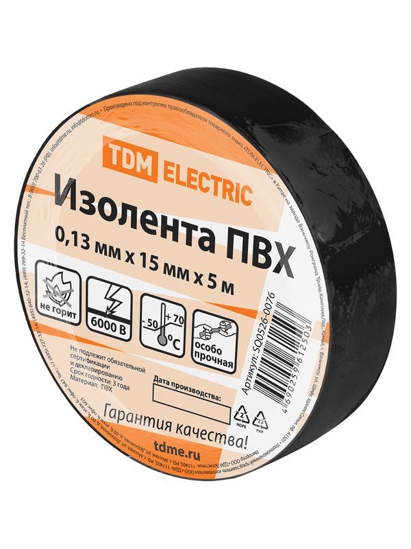 Изолента ПВХ 0,13*15мм Черная 20м TDM SQ0526-0016
