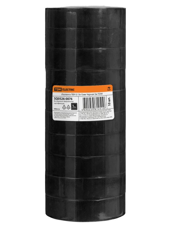 Изолента ПВХ 0,13*15мм Черная 10м TDM SQ0526-0026