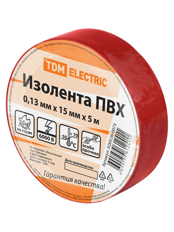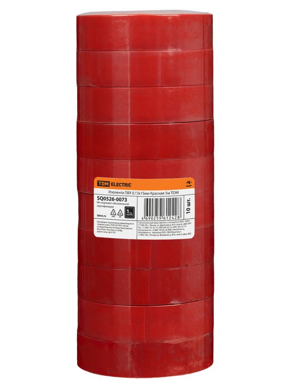 Изолента ПВХ 0,13*15мм Красная 10м TDM SQ0526-0023
