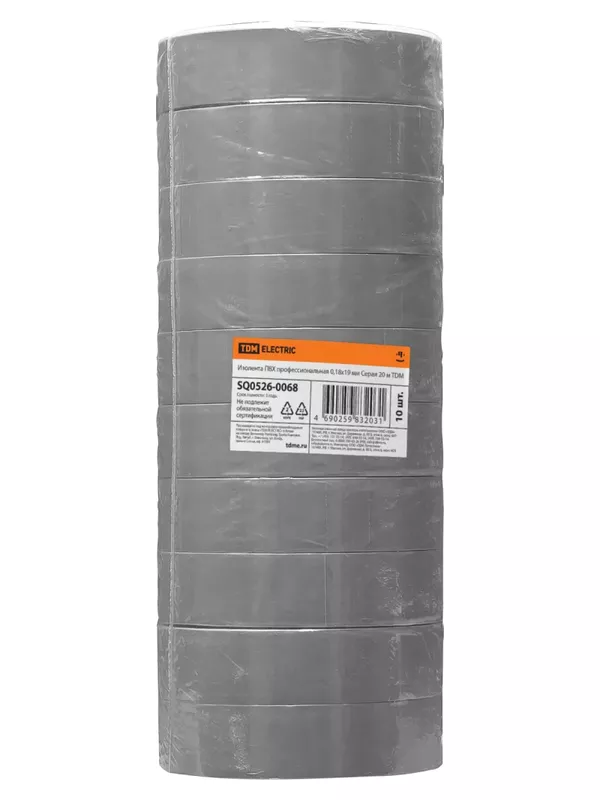 Изолента ПВХ профессиональная 0,18х19 мм Серая 20 м TDM