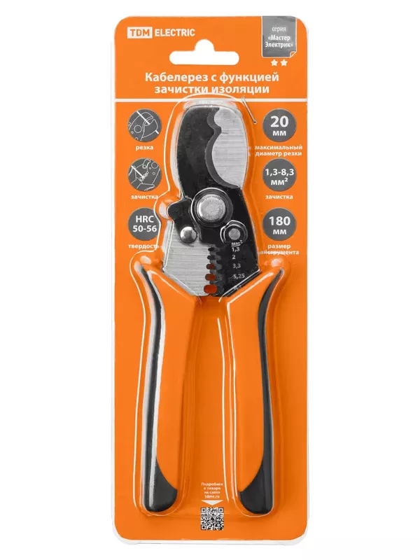 Кабелерез с функцией зачистки изоляции, 180 мм, усиленный, Al/Cu 35/10 мм², «МастерЭлектрик» TDM