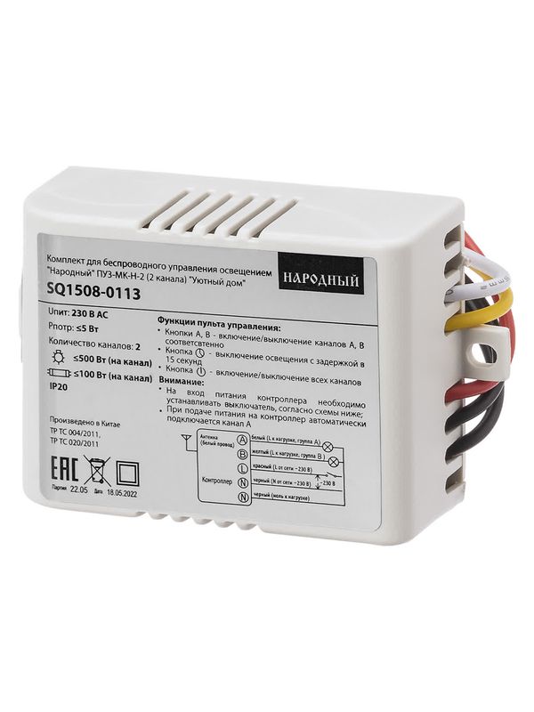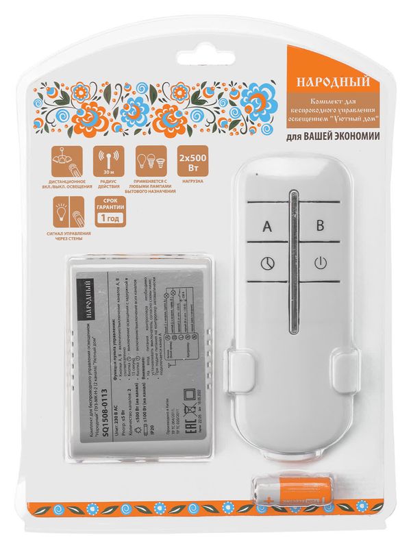 / Комплект для беспроводного управления освещением «Народный» ПУ3-МK-Н-2 (2 канала) «Уютный дом»