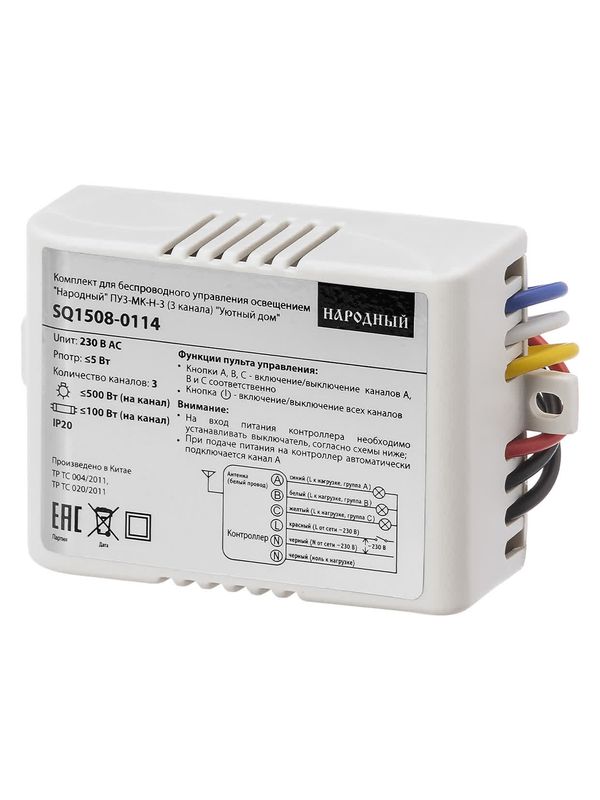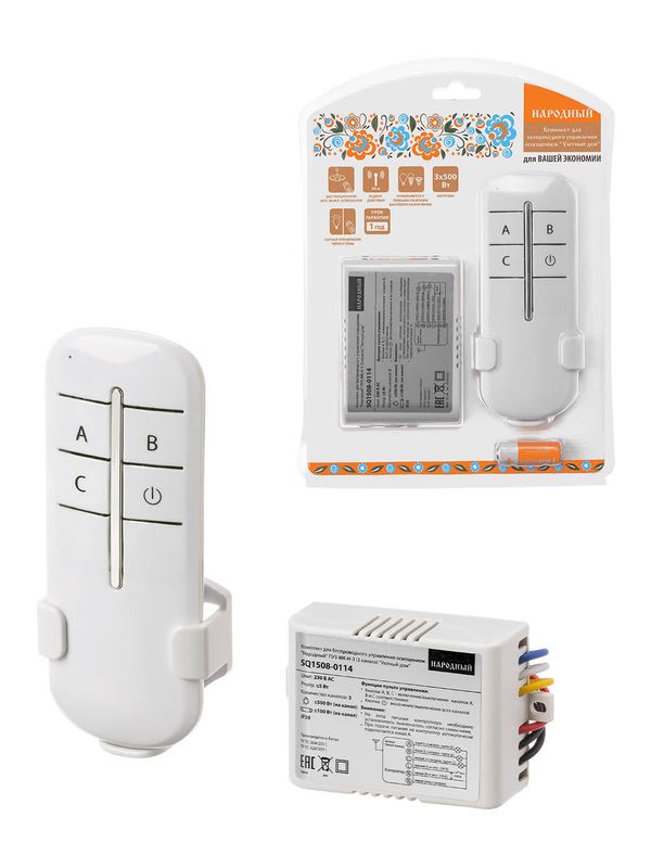 / Комплект для беспроводного управления освещением «Народный» ПУ3-МK-Н-3 (3 канала) «Уютный дом»