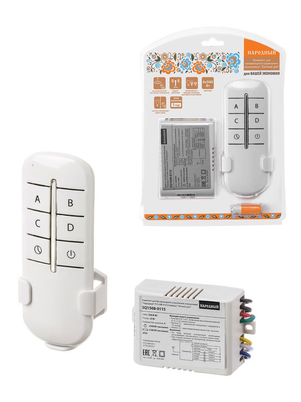 / Комплект для беспроводного управления освещением «Народный» ПУ3-МK-Н-4 (4 канала) «Уютный дом»