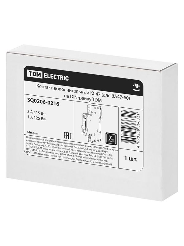 Контакт дополнительный КС47 (для ВА47-60) на DIN-рейку TDM SQ0206-0216 – ООО «Эмсилайт»