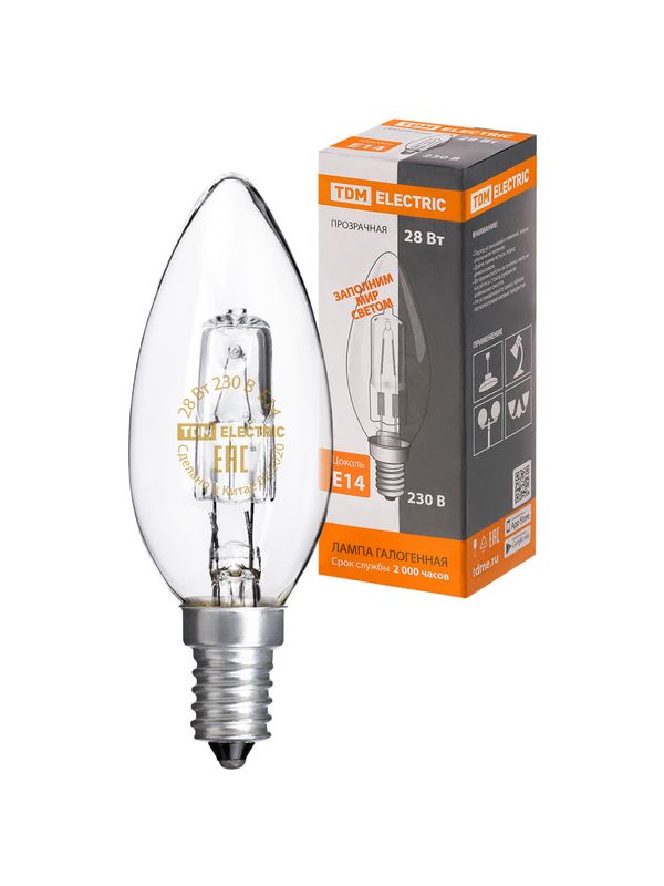 Лампа галогенная "Свеча" прозрачная 28 Вт-230 В-Е14 TDM – ООО «Эмсилайт»