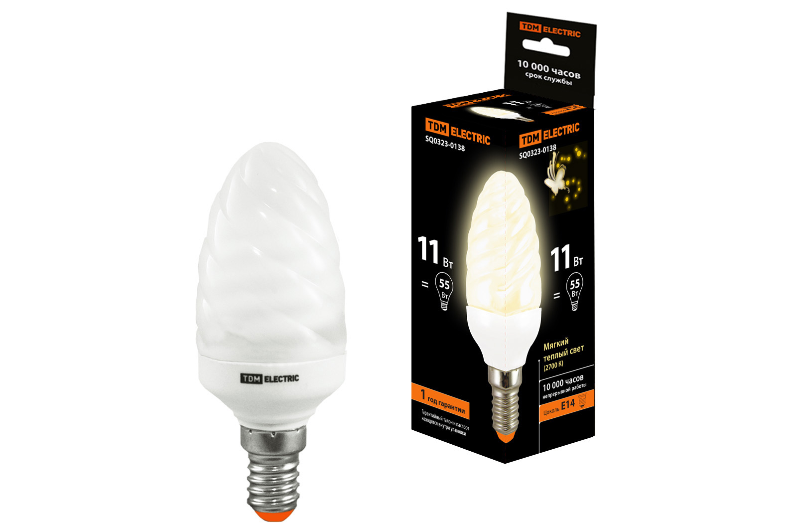 Лампа энергосберегающая КЛЛ-СT-11 Вт-2700 К–Е14 TDM (витая свеча) (mini) SQ0323-0138 – ООО «Эмсилайт»
