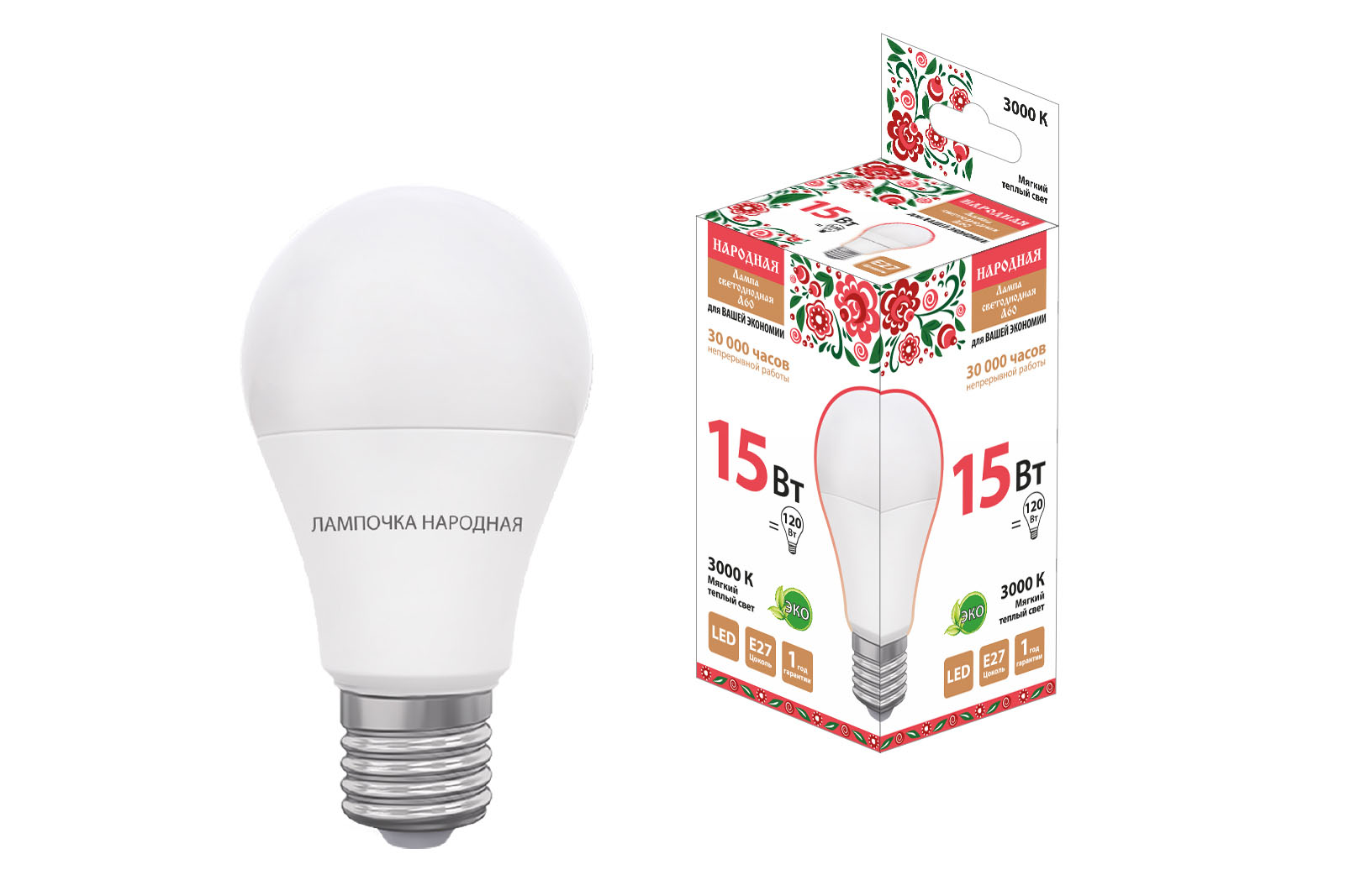 Лампа светодиодная НЛ-LED-A60-15 Вт-230 В-3000 К-Е27, (60х112 мм), Народная SQ0340-1514 – ООО «Эмсилайт»