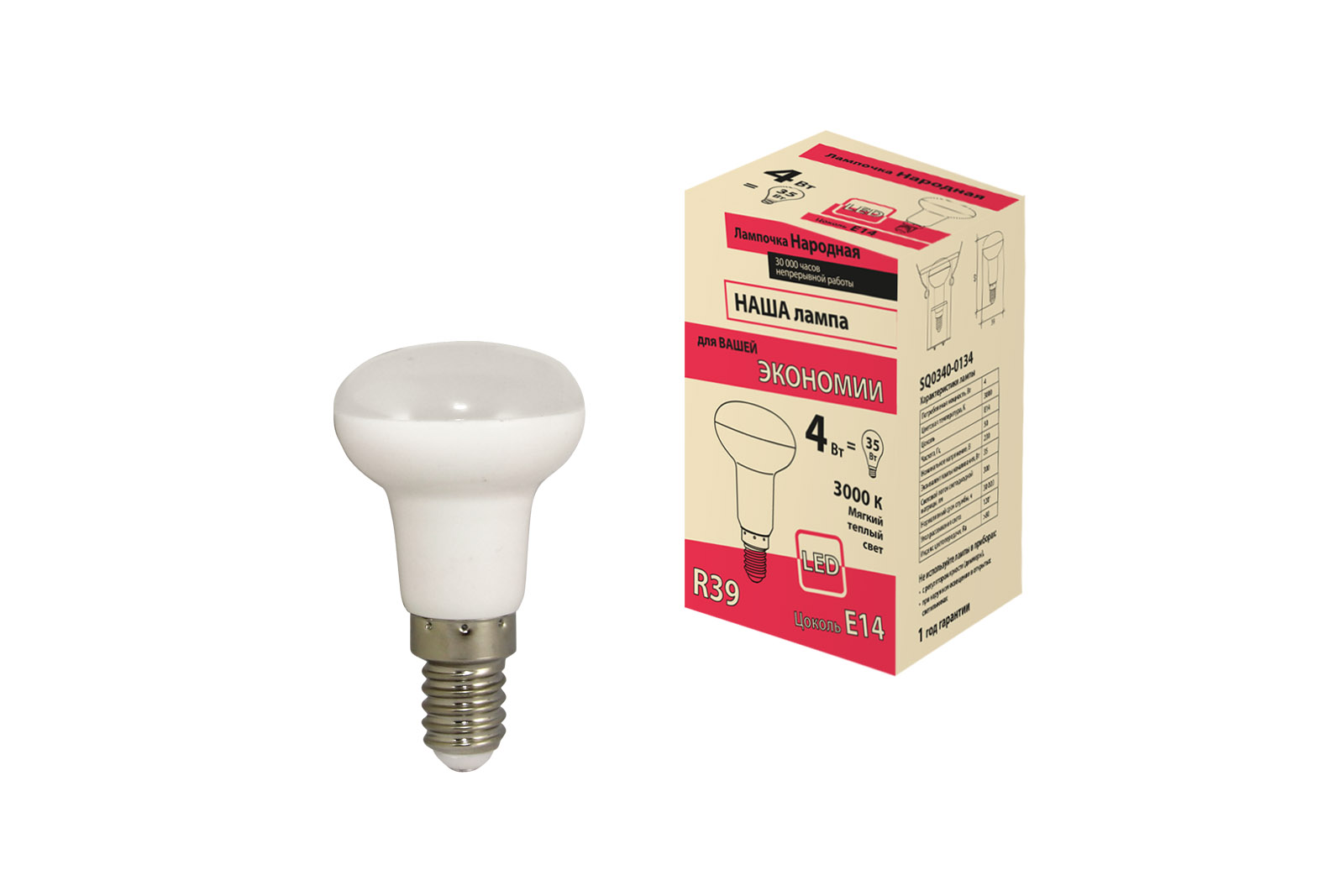 Лампа светодиодная R39 - 4 Вт-230 В -3000 К–E14 Народная SQ0340-0134 – ООО «Эмсилайт»