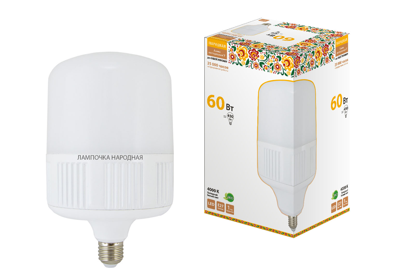 Лампа светодиодная T-60 Вт-230 В-4000 К–E27 (160x265 мм) НАРОДНАЯ SQ0340-1583 – ООО «Эмсилайт»