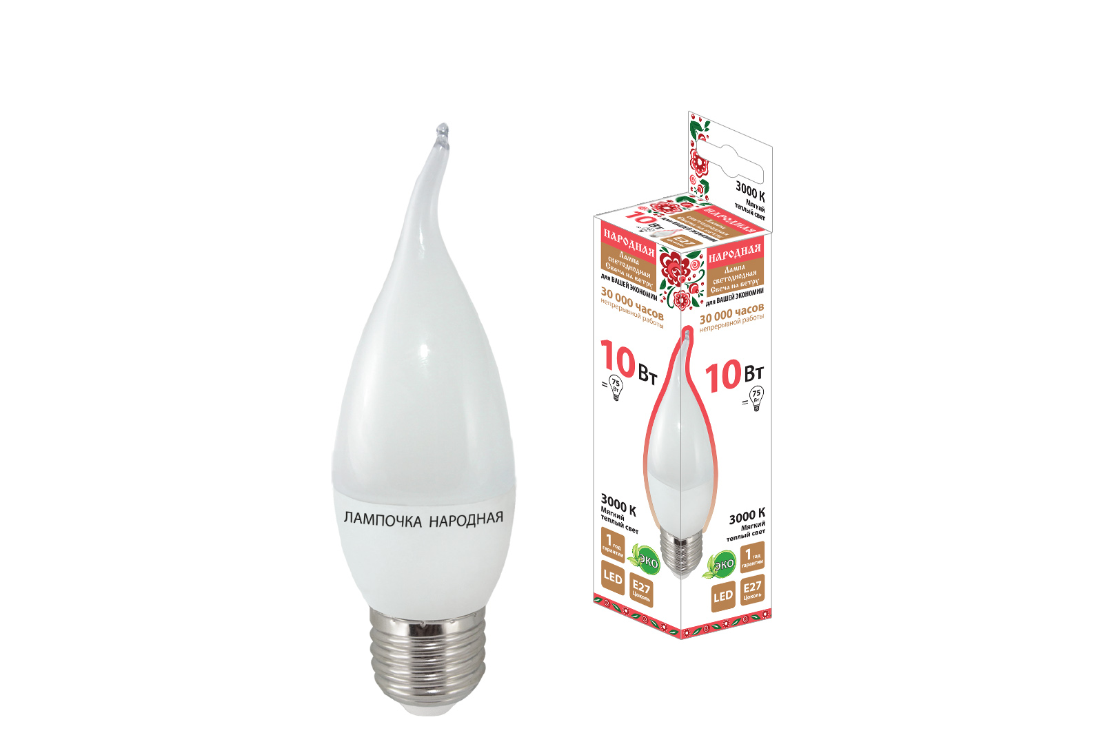 Лампа светодиодная WFC37-10 Вт-230 В -3000 К–E27 (свеча на ветру) Народная SQ0340-1599 – ООО «Эмсилайт»