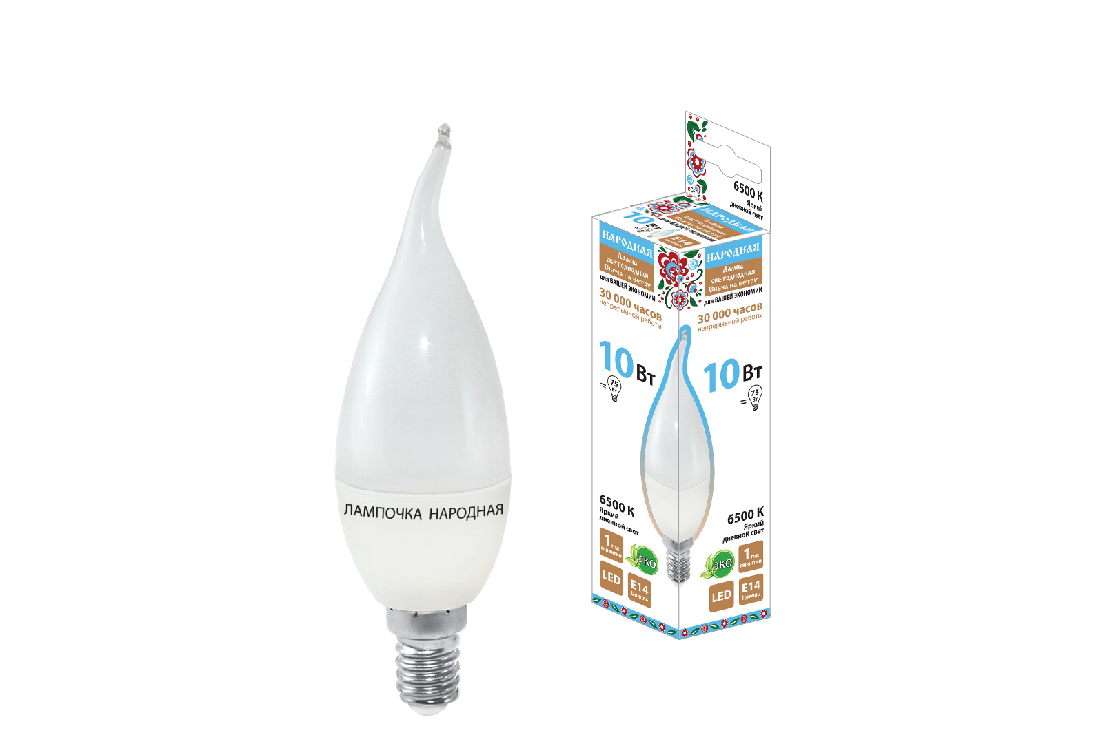 Лампа светодиодная WFС37-10 Вт-230 В -6500 К–E14 (свеча на ветру) Народная SQ0340-1602 – ООО «Эмсилайт»