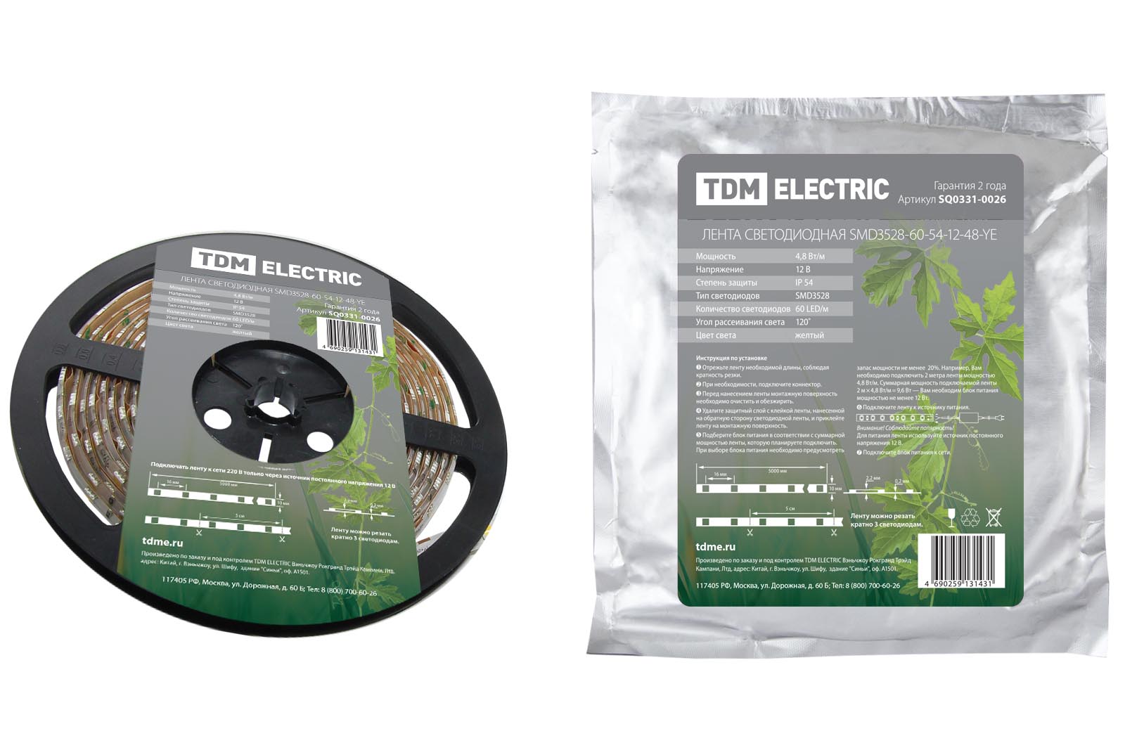 — Гарантия качества. Каждый отрезок светодиодной ленты промаркирован знаком “TDM”, что гарантирует защиту от подделок. На светодиодную ленту предоставляется гарантия 2 года.