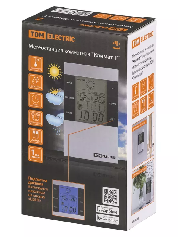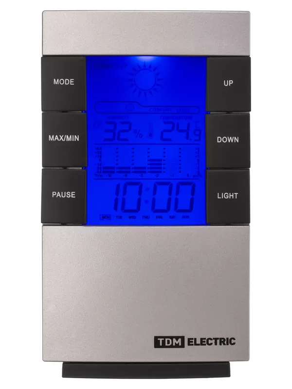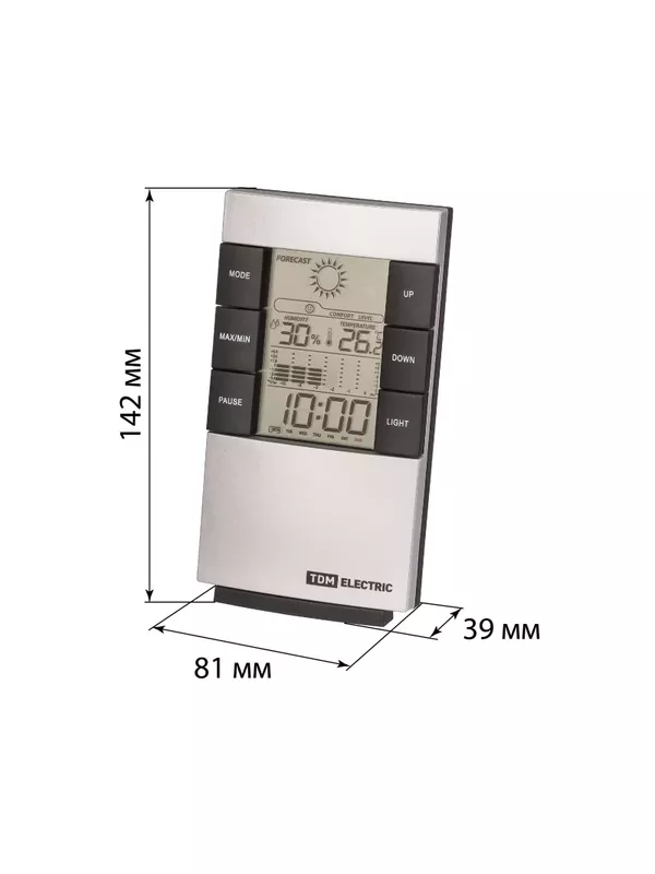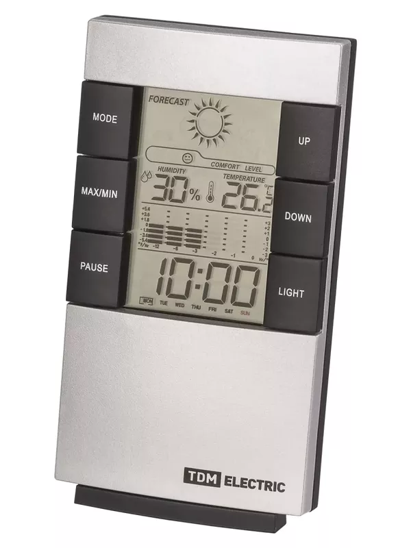 / Метеостанция комнатная «Климат 1» вертикальная, термометр, гигрометр, будильник, серебро, TDM
