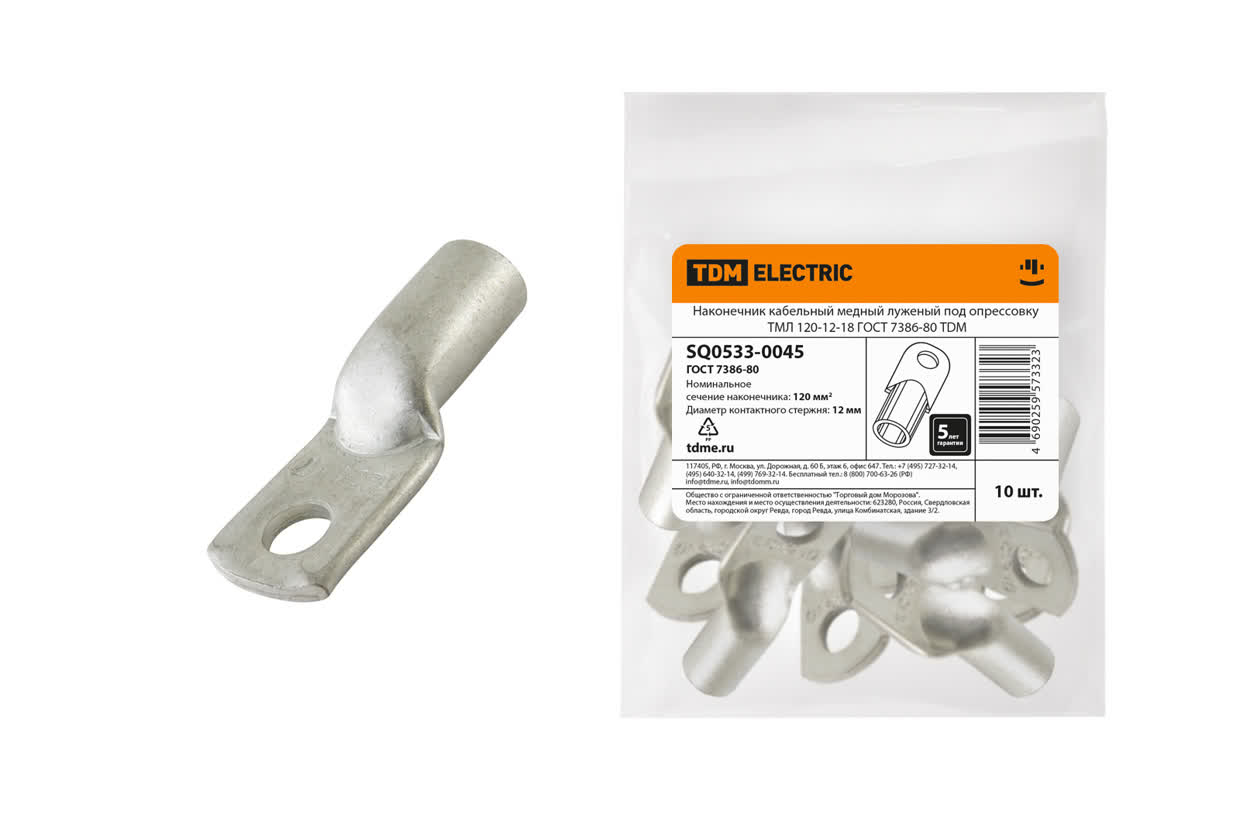 Наконечник медный луженый ТМЛ 120-12-18 ГОСТ 7386-80 TDM – ООО «Эмсилайт»