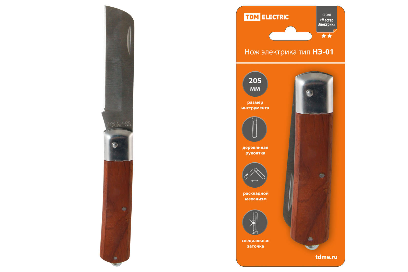 "Нож электрика НЭ-01, 205 мм, деревянная рукоятка ""МастерЭлектрик"" TDM" SQ1003-0105 – ООО «Эмсилайт»