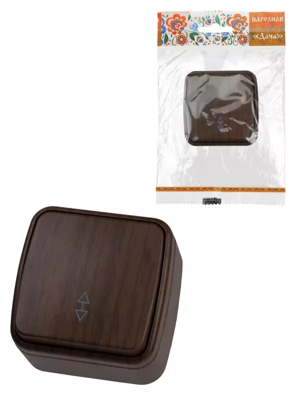 / Переключатель на 2 направления 1-кл. открытой установки IP20 10А, венге «Дача» Народная