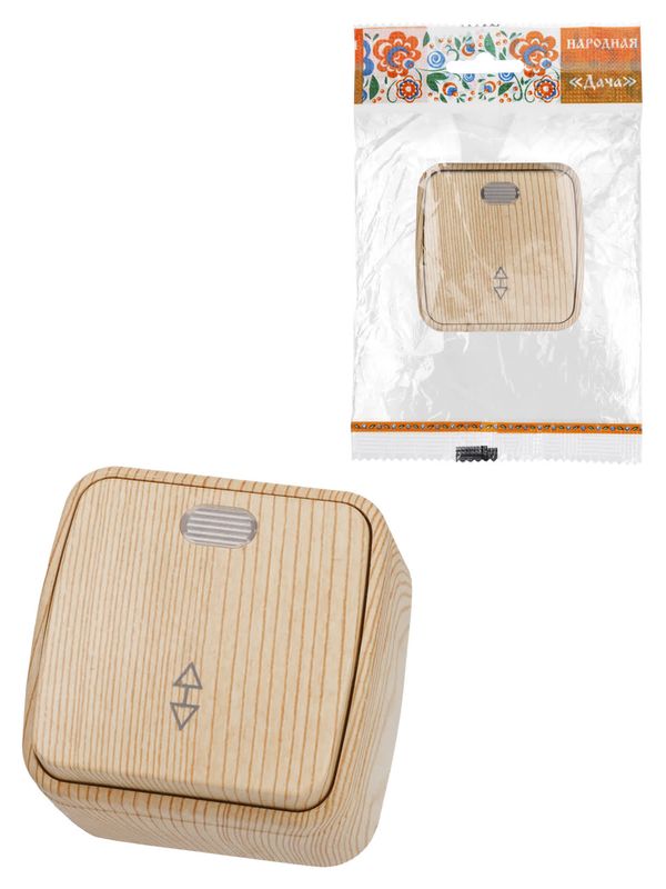Переключатель на 2 направления 1-кл. открытой установки с подсветкой IP20 10А, сосна «Дача» Народная
