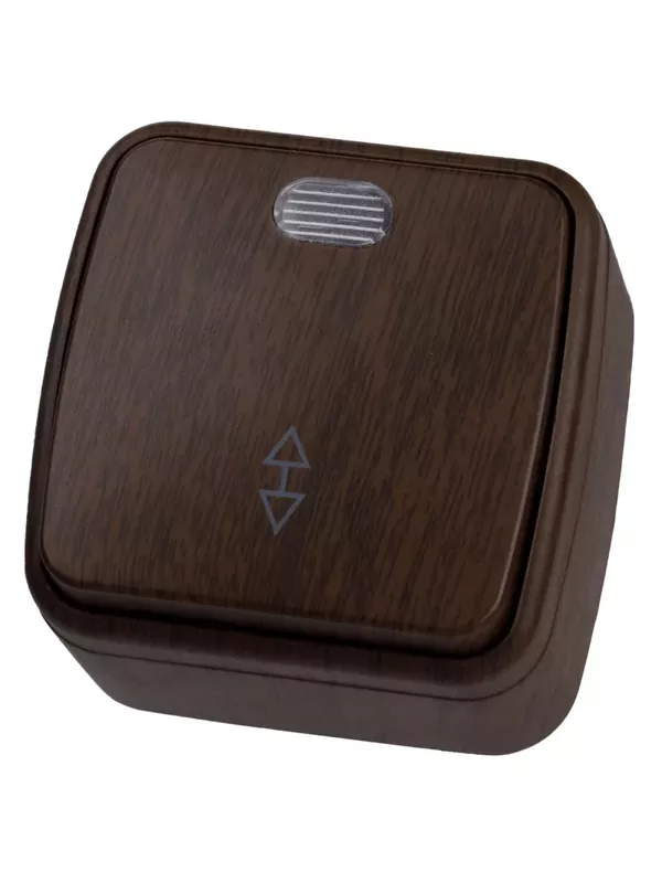 Переключатель на 2 направления 1-кл. открытой установки с подсветкой IP20 10А, венге «Дача» Народная