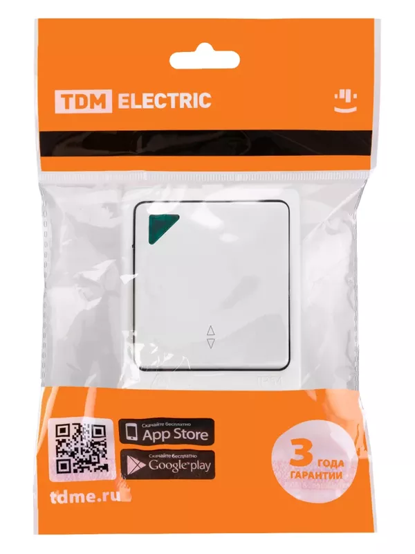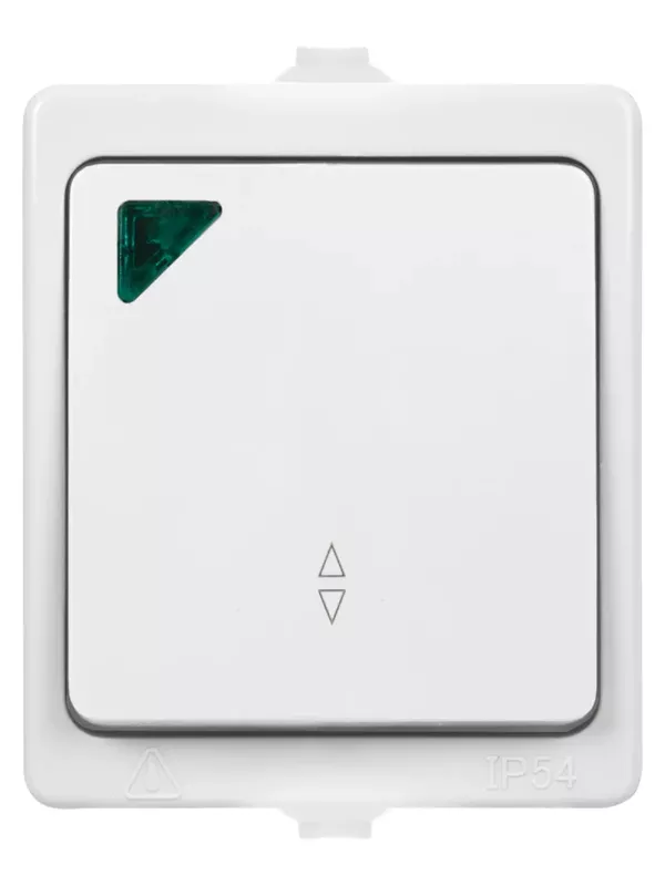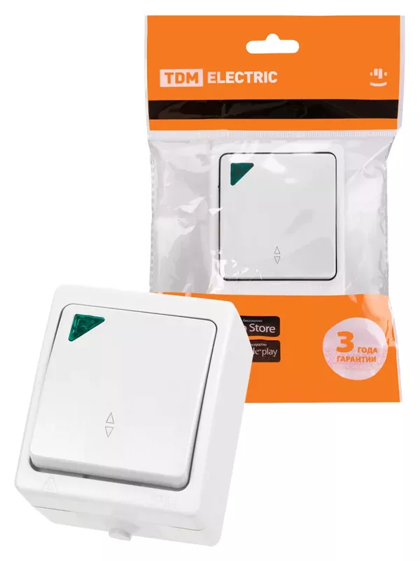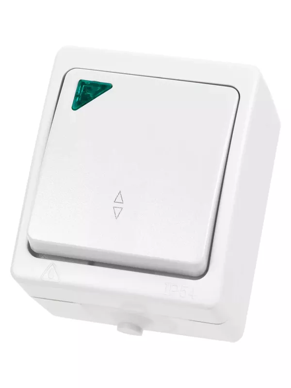 / Переключатель на 2 направления 1-кл. с подсветкой открытой установки IP54 10А белый «Вуокса» TDM
