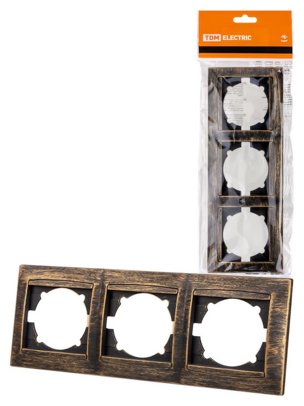 / Рамка 3-х постовая горизонтальная старинная бронза «Лама» TDM