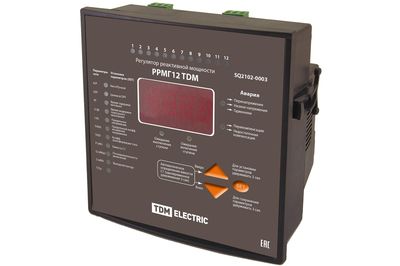 - Регулятор реактивной мощности РРМГ-12, применяемый в установках компенсации реактивной мощности (УКРМ), оснащен измерительными контурами тока и напряжения. После цифровой обработки измеренных величин с высокой точностью определяются значения коэффициента мощности, и, путем подключения или отключения необходимого числа батарей (ступеней) конденсаторов, осуществляется регулирование реактивной мощности.