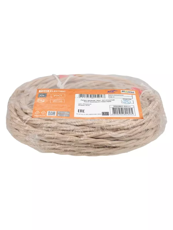Ретро провод «Эко» 2х2,5 витой ГОСТ бежевый (20м) TDM