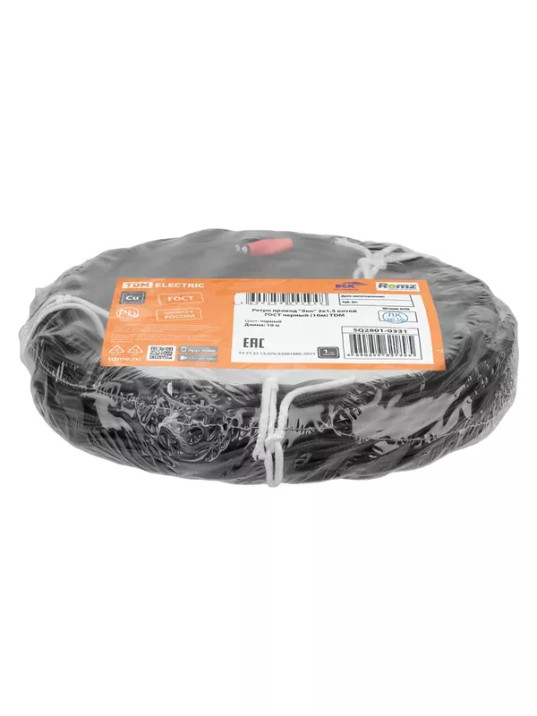 Ретро провод «Эко» 2х1,5 витой ГОСТ черный (10м) TDM