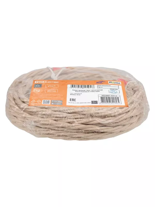 / Ретро провод «Эко» 2х2,5 витой ГОСТ бежевый (10м) TDM