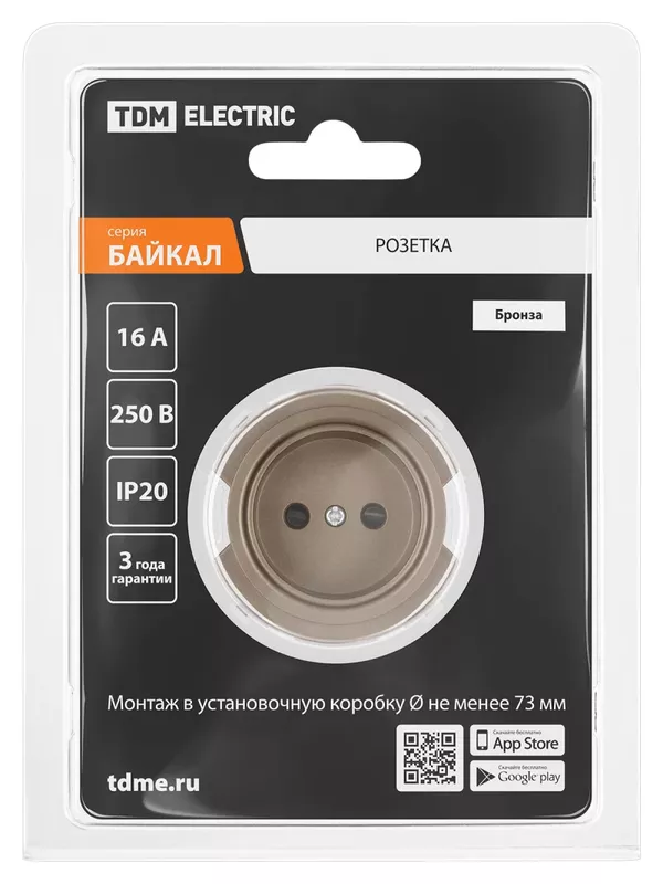/ Розетка 2П 16А 250В с защ. шт. бронза, «Байкал» TDM