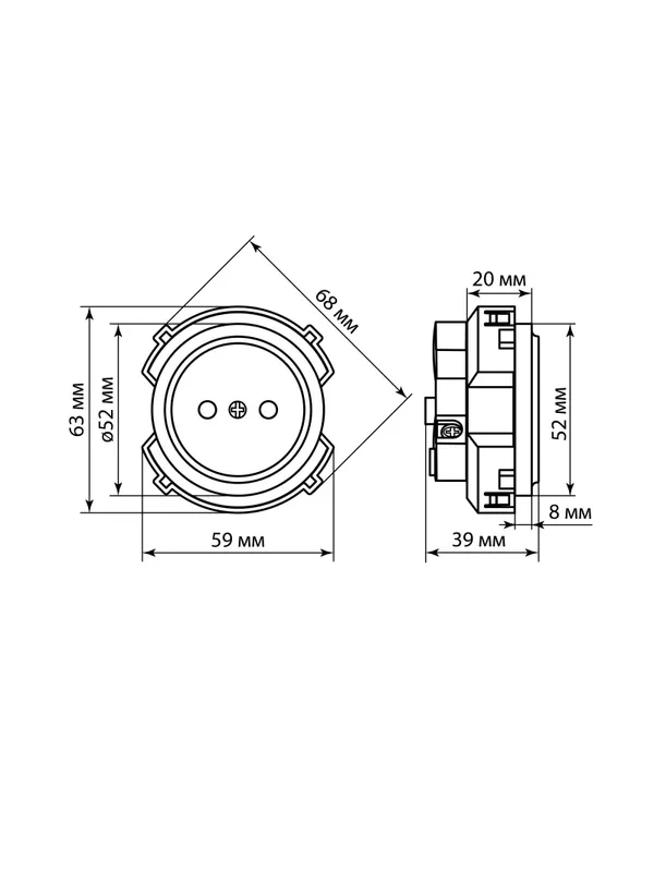 Розетка угловая двойная 2П открытой установки с з/ш IP20 250В 10А бук «Ладога» TDM