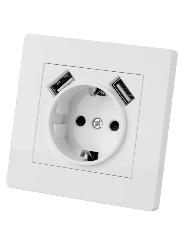 / Розетка 2П+З 16А 250В + 2 USB порта 2,1А 5В белая «Сенеж» TDM