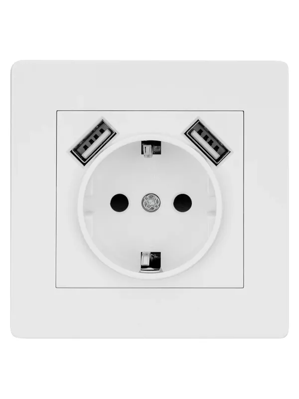 Розетка 2П+З 16А 250В + 2 USB порта 2,1А 5В белая «Сенеж» TDM