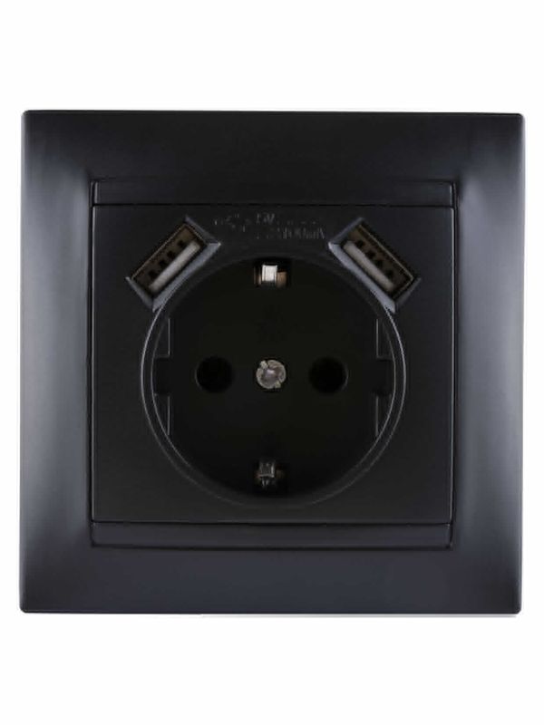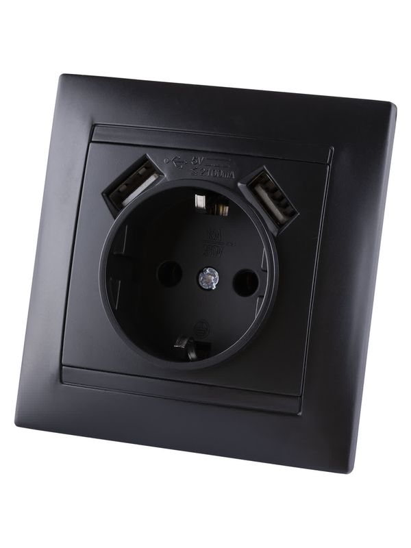 Розетка 2П+З 16А 250В + 2 USB порта 2,1А 5В графит «Лама» TDM