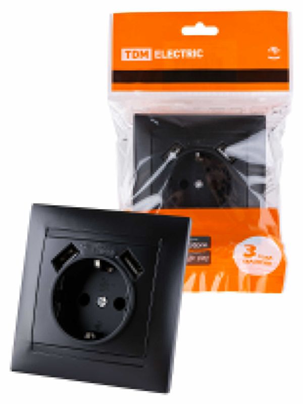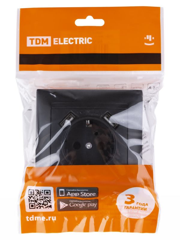 / Розетка 2П+З 16А 250В + 2 USB порта 2,1А 5В графит «Лама» TDM