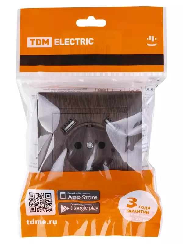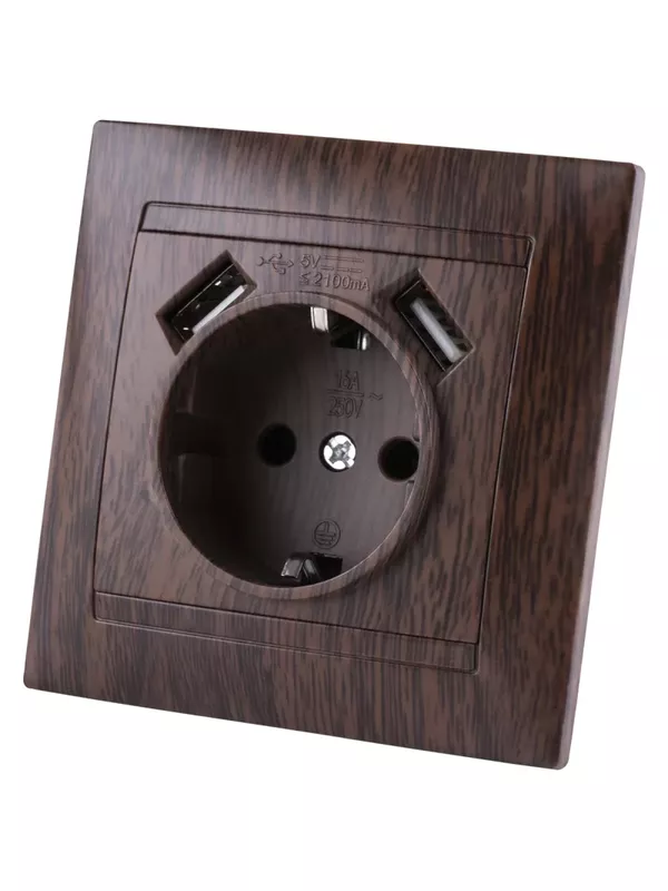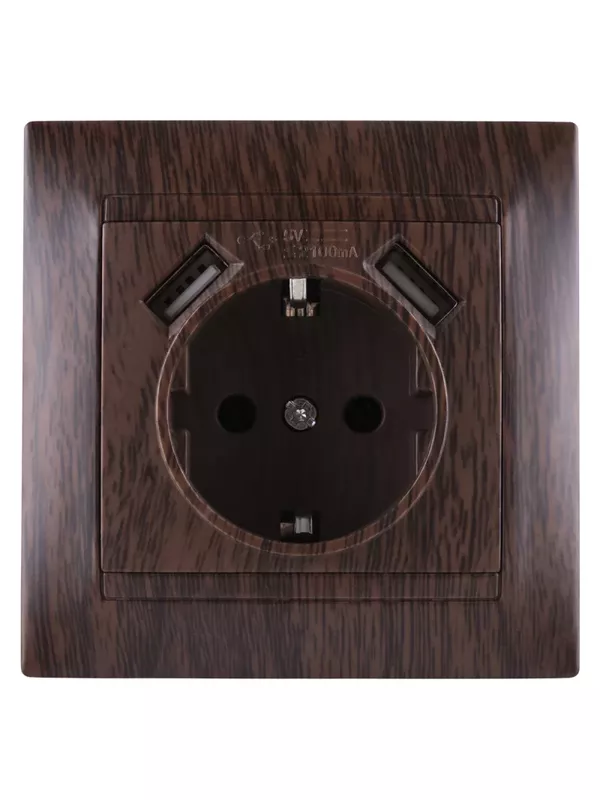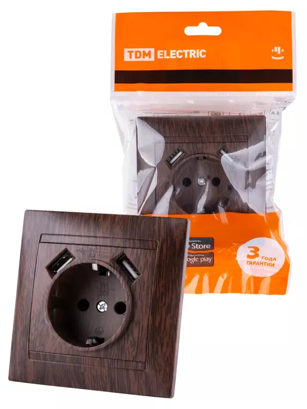Розетка 2П+З 16А 250В + 2 USB порта 2,1А 5В венге «Лама» TDM
