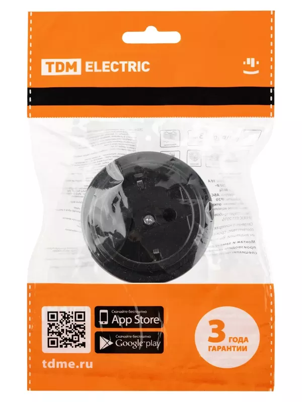 / Розетка 2П+З 16А 250В черная «Виви» TDM
