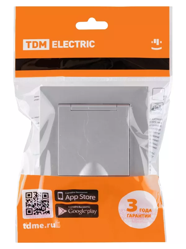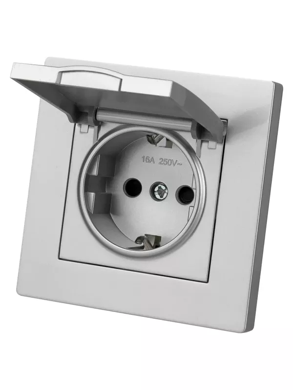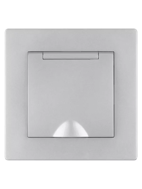 Розетка 2П+З 16А 250В IP44 с защ. шт. с крышкой серебр. металлик «Сенеж» TDM