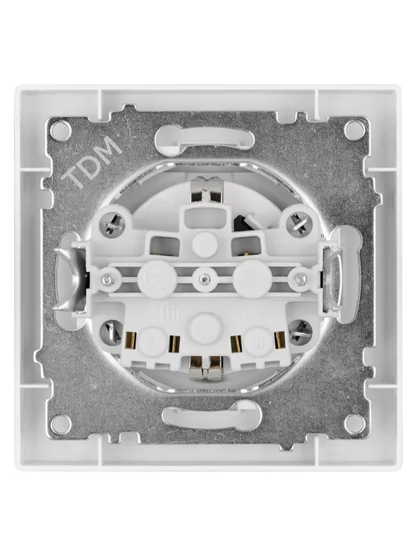 Вилка круглая плоская с кольцом белая 16А 250В TDM