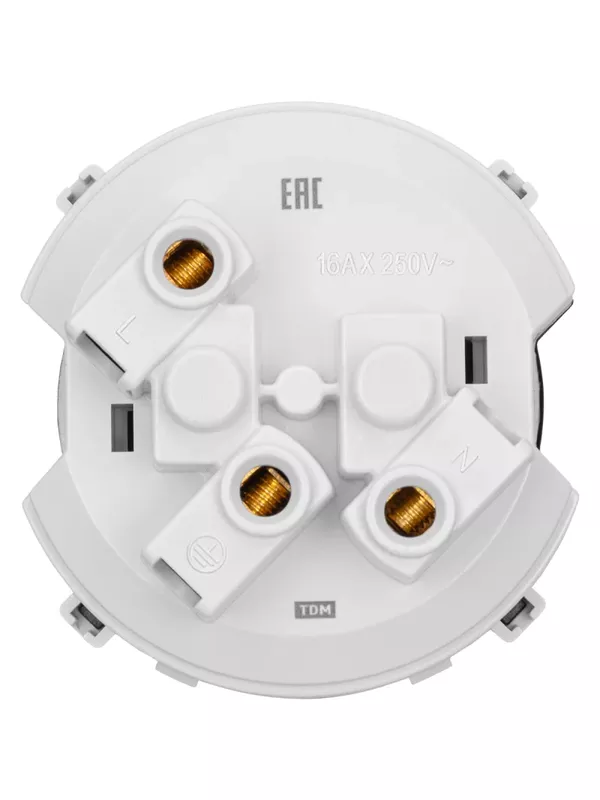 Вилка круглая плоская с кольцом белая 16А 250В TDM