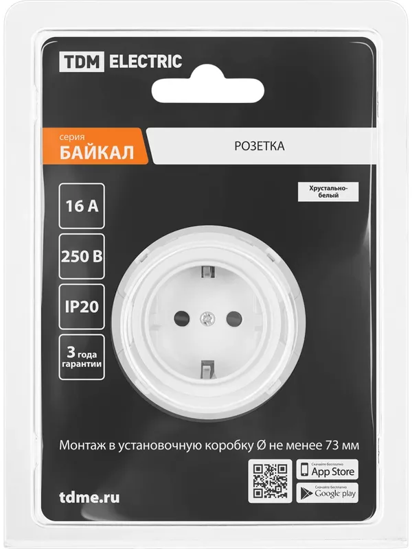Розетка 2П+З 16А 250В с защ. шт. белая, «Байкал» TDM