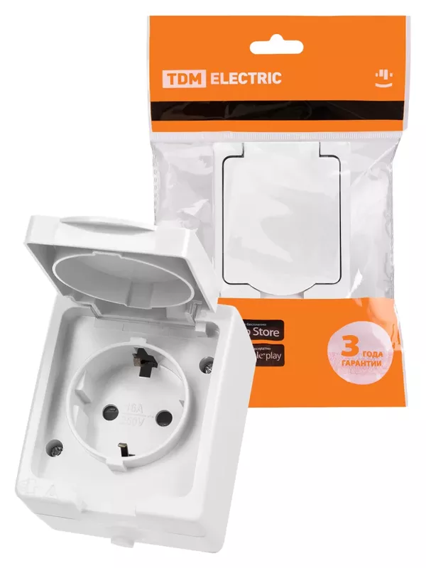 / Розетка 2П+З открытой установки IP54 16А белая «Вуокса» TDM