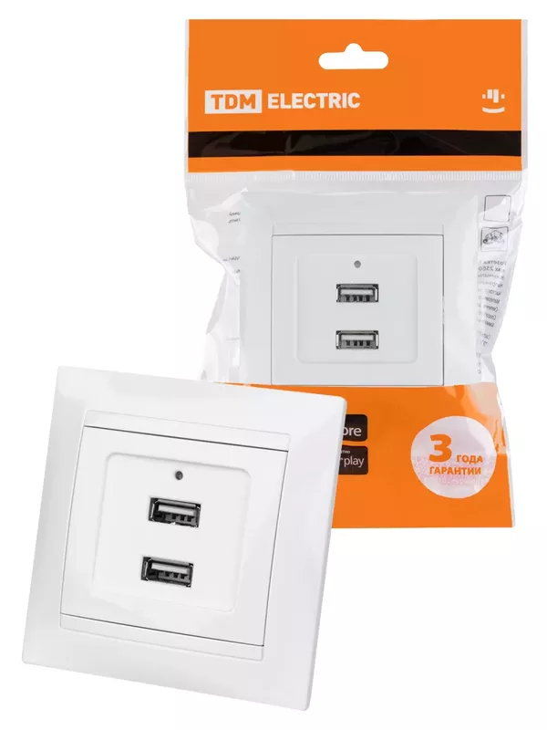 / Розетка 2USB порт 2,1А 5В белая «Лама» TDM