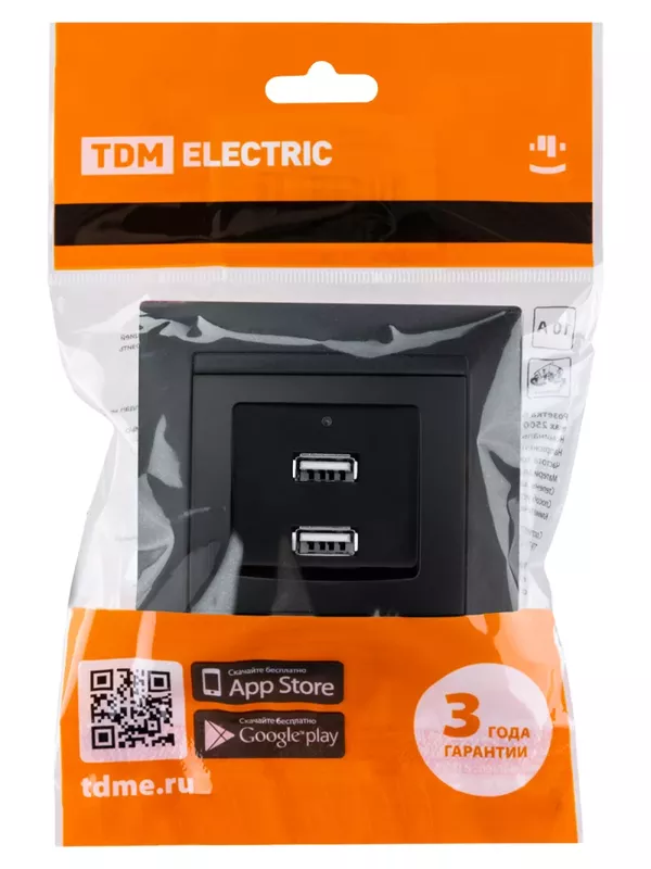 / Розетка 2USB порт 2,1А 5В графит «Лама» TDM