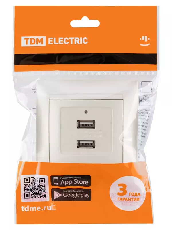 / Розетка 2USB порт 2,1А 5В перламутр «Лама» TDM