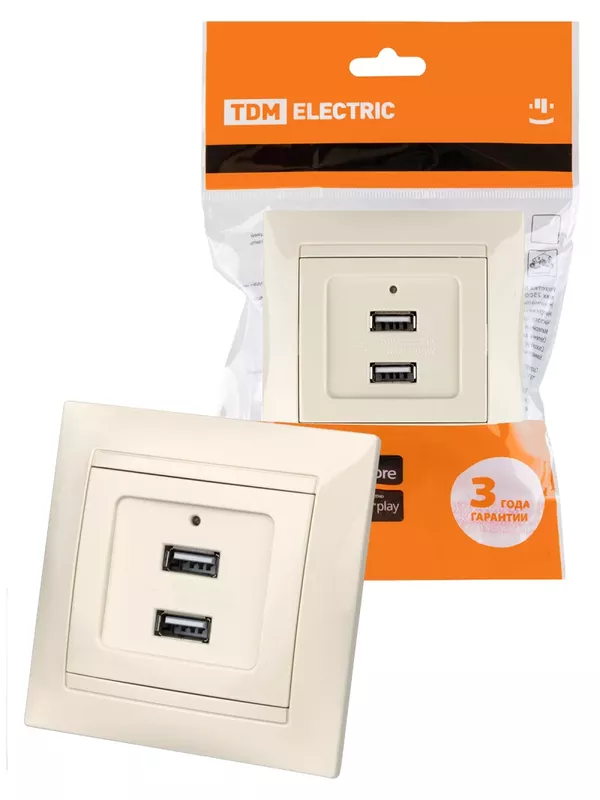 / Розетка 2USB порт 2,1А 5В сл. кость «Лама» TDM